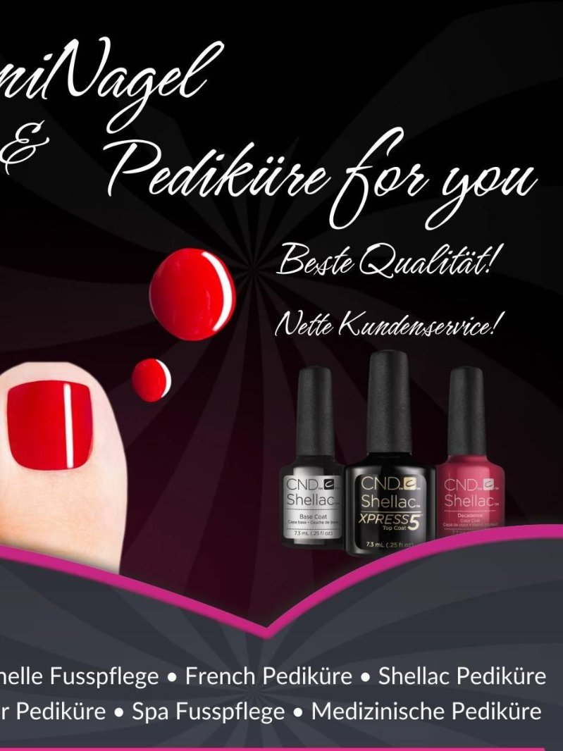 In arbeite Gerne mit Atherischem Ölen , dass duftende Fussbad und Fussmassage kombiniere ich mit Pediküre . Natürlich Pflege gerne Problematische Füße auch eingewachsene Nagel behandlung Nagelpilz Behandlung mit Grenz und mass. Schöne Lackierungen ,Shellack French Pediküre tu ich sehr gern. . Pediküre für Empfindliche Füßen Herren und Damen Pediküre . Die pflege und genauigkeit Qualität für mich ist sehr wichtig. Ich arbaeite Hygienish estetisch und vorsichtig.Meinen Kunden ist verwöhnt bei mir🙂 Ich freu mich für die Positive Rezessionen!
